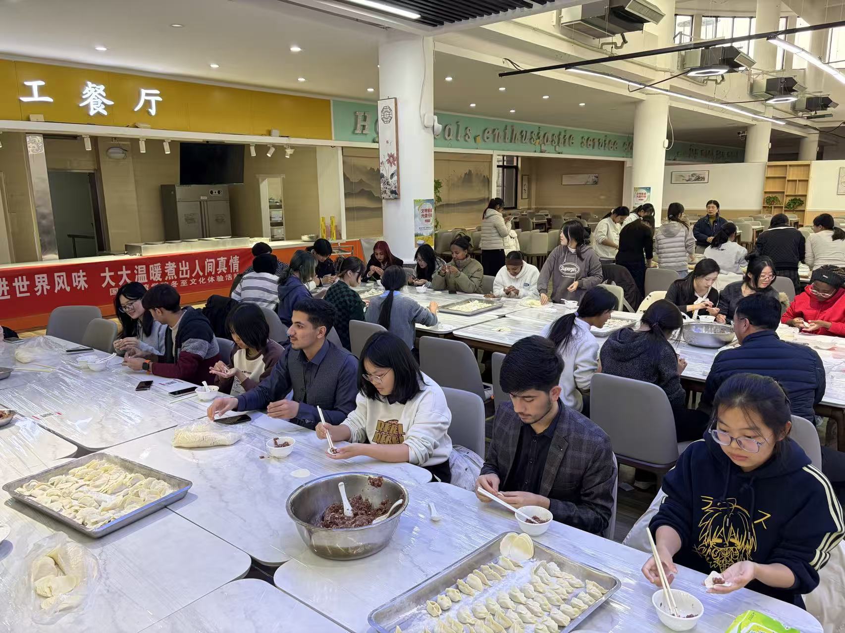 12月20日下午,在冬至节气即将到来之际,国际交流学院举办了一场别开生面的中外学生冬至包饺子文化交流活动。本次活动特别邀请了我校外籍教师和外国语学院学生共同参与,并得到了后勤管理处的大力协助。中外师生学子齐聚一堂,通过亲手包制中国传统美食,共同感受冬至节气的独特魅力,促进了跨文化交流与友谊。